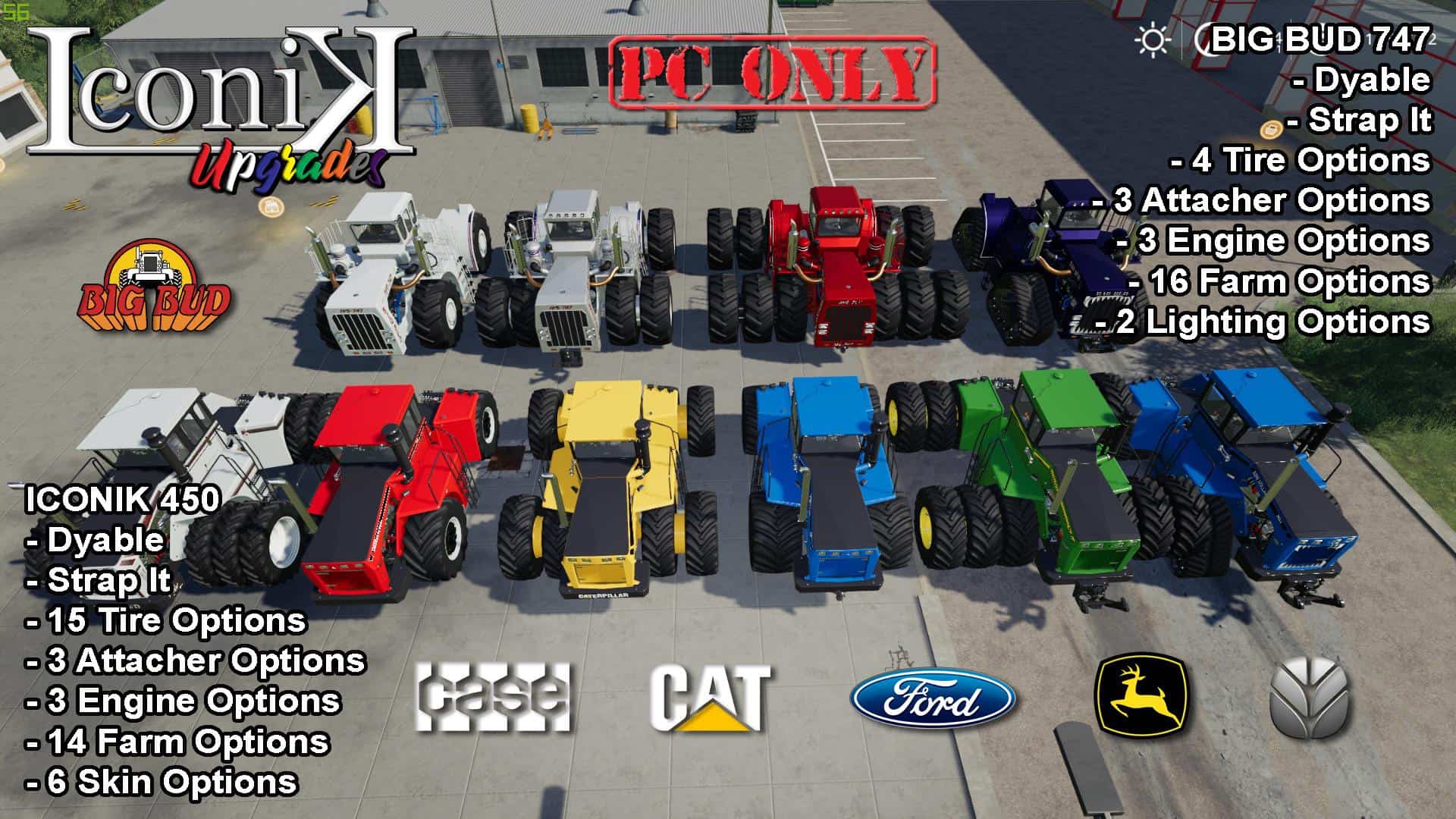 Finding a game interesting after investing 300 hours into it can become a bit challenging. But with mods as long as there is a new update is assured, you are guaranteed a few more hours of new exciting gameplay. FS 19 Tractors Mods are one of the greatest upgrades and can make your game unique. Downloading and adding FS19 Iconik Big Buds v1.0 Mod to your game is not difficult at all - you simply need to save a file and run it.