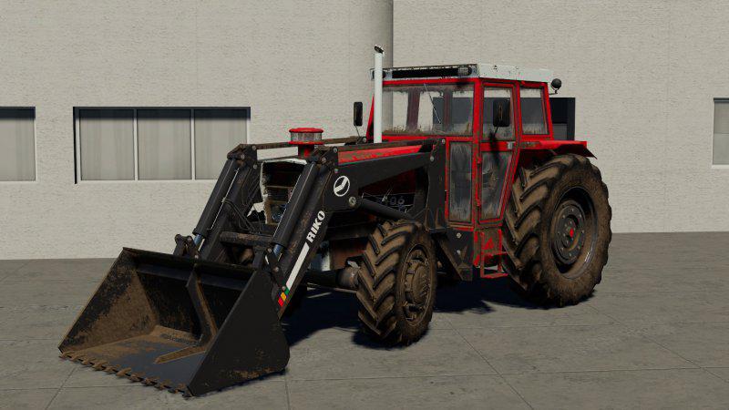 – Complete with: front loader, universal bucket, bale fork, pallet fork, grab fork.