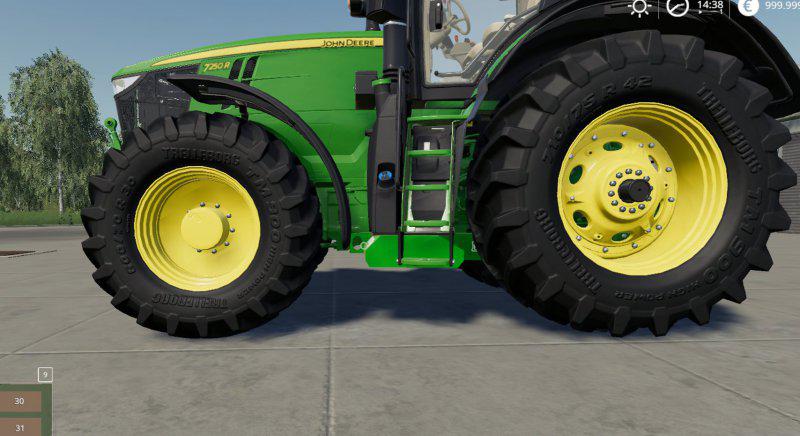 The original John Deere Series 7R was equipped with a frame with catch hooks for EZ ballast underfloor ballasting. The tractor with special equipment costs € 4,500 more than the standard version.