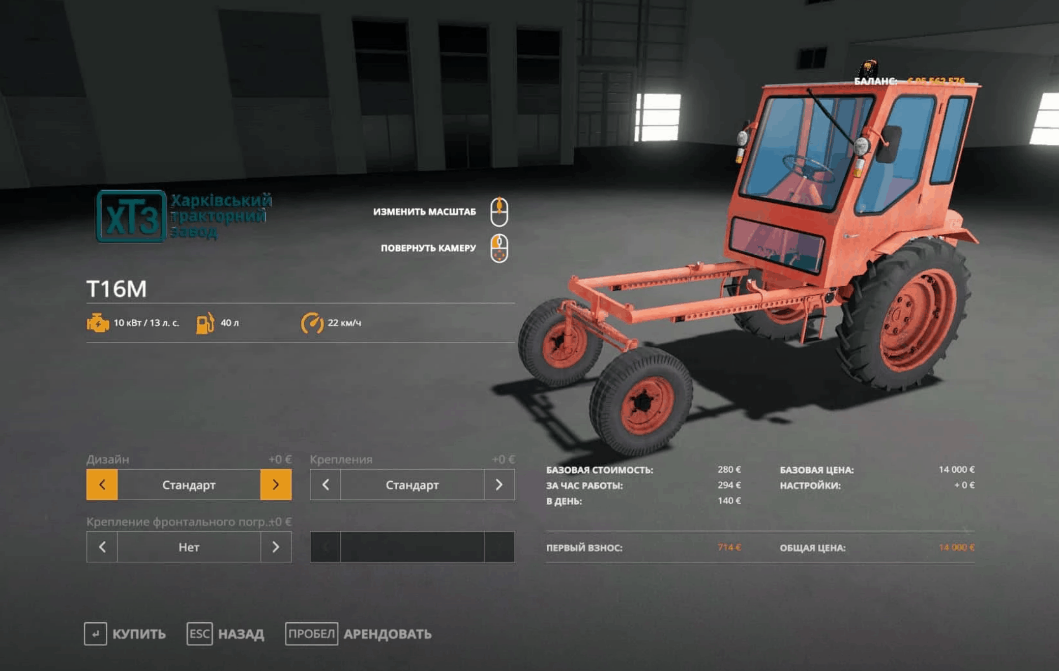Fixed front loader, minor fixes. The pack includes: – Tractor T-16M; – Sprayer; – Sprayer barrel; – Modular body platform; – Modular onboard body; – Modular body for transporting liquids; – Mounted mower; – 2 bucket options; – 2 loader options; – Fork for bales; – Pallet forks; – Trailer for transporting modules.