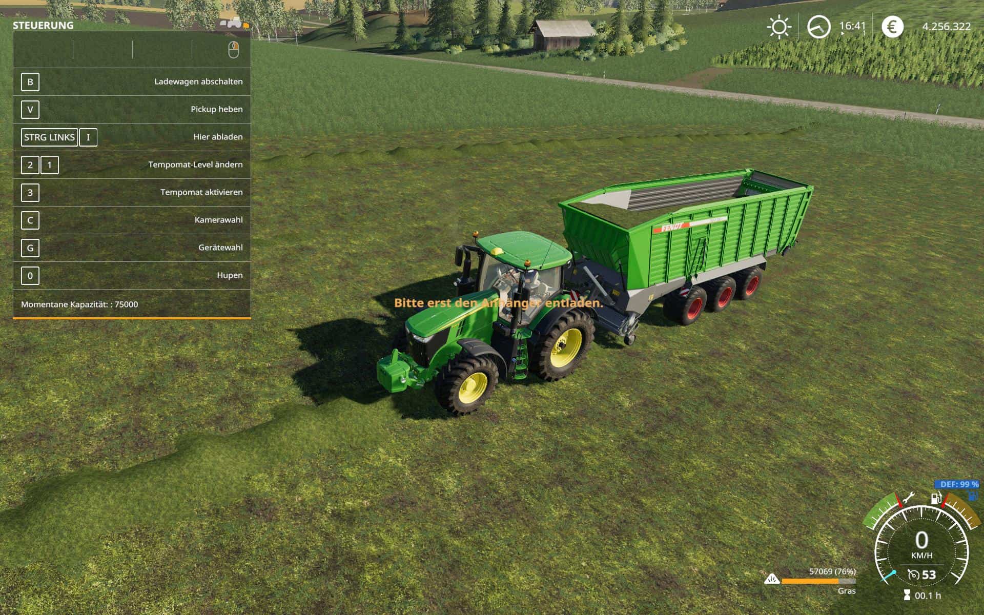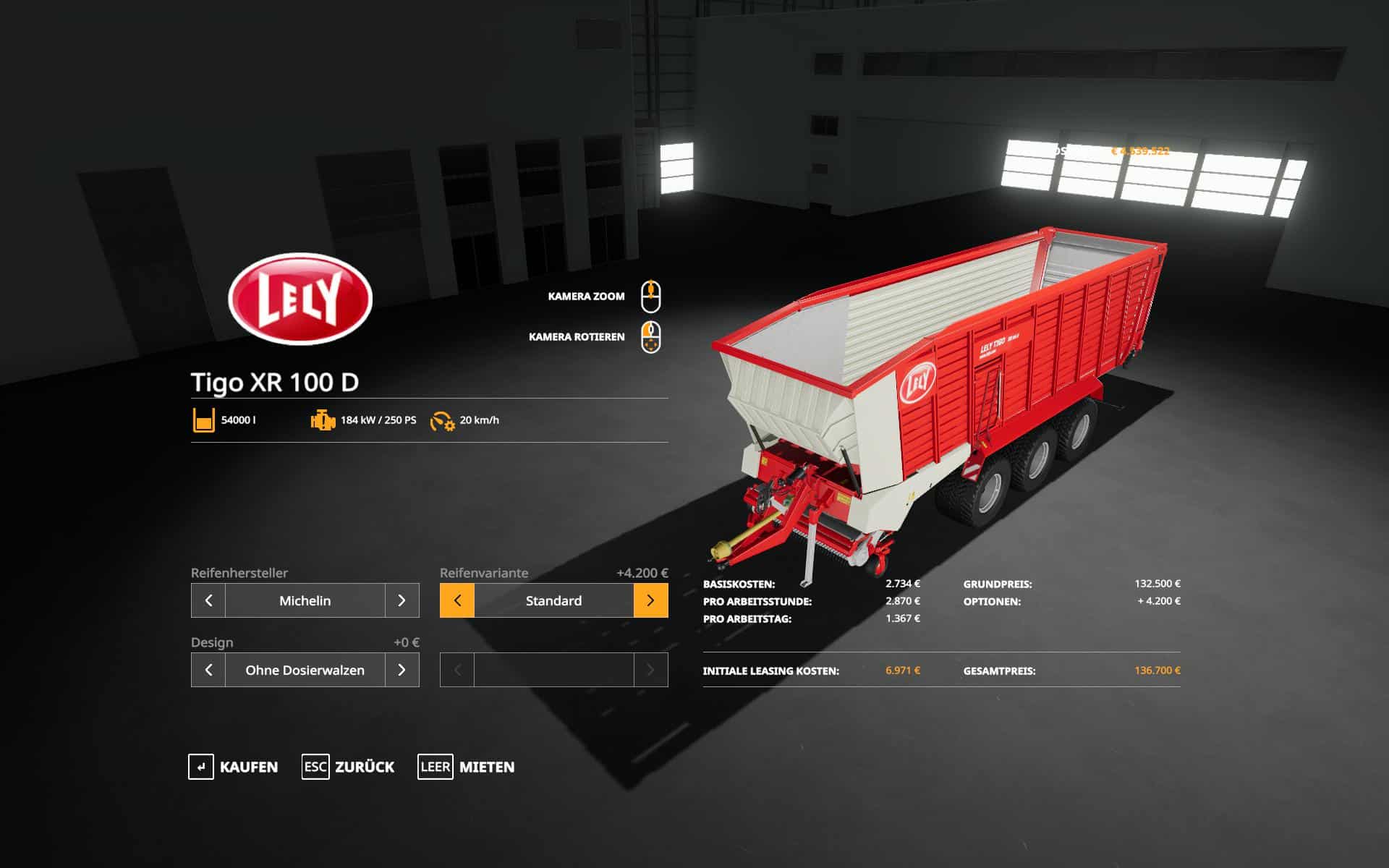 You can choose the capacity after purchase (default key K). 54000, 75000, 100.000Liter. Choose wisely, depending on the material you transport. Once you started to fill it, you can’t change the capacity anymore. You’ve to unload it first.