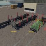 This is set of three log trailers, which have larger space between forks, so you can load / unload them with front loader or big arm loaders.