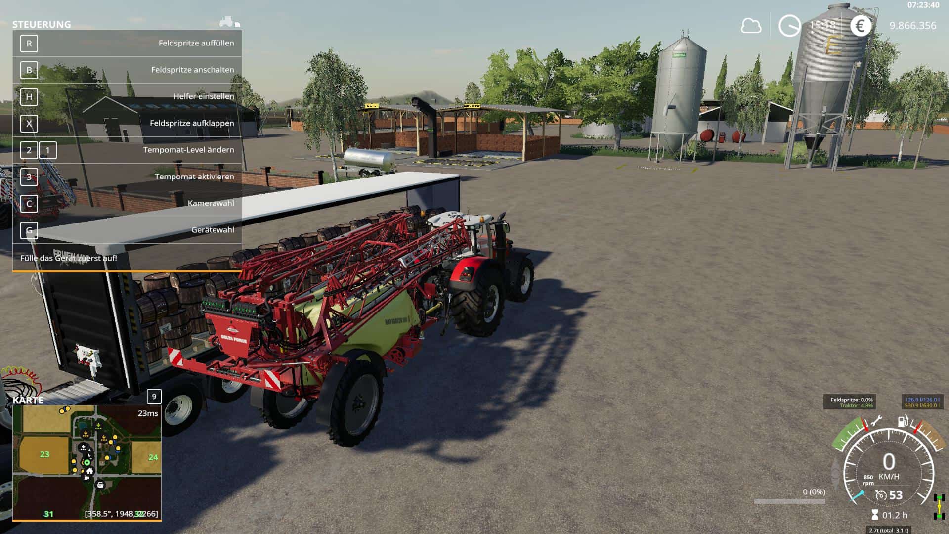 Config Autoload and Autoload XXS: The well-known autoload from Alfalfa (thanks for that). With the XXS version, the pallets must be placed on the loading surface. As in the old version, the IBC tanks (liquid fertilizers and pesticides) do not fit side by side on the loading area, so the transport should take place with the autoload activated.