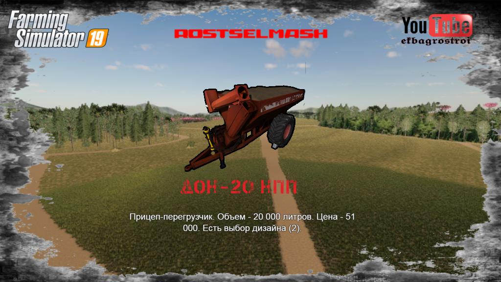 Finding a game interesting after investing 300 hours into it can become a bit challenging. But with mods as long as there is a new update is assured, you are guaranteed a few more hours of new exciting gameplay. FS 19 Trailers Mods are one of the greatest upgrades and can make your game unique. Downloading and adding FS19 Rostselmash Don-20 NPP v1.0 Mod to your game is not difficult at all - you simply need to save a file and run it.