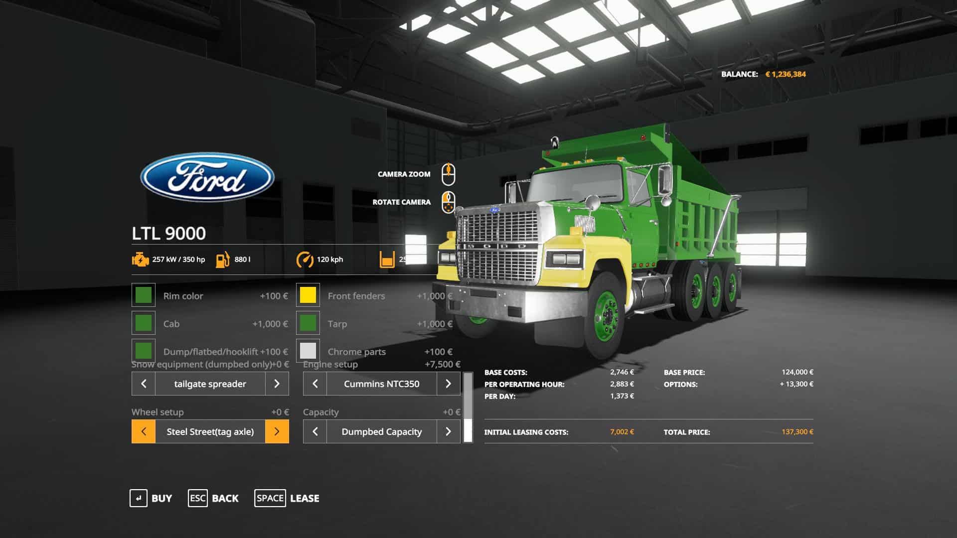 – tag axle: none, single or dual, liftable with right mouse button.