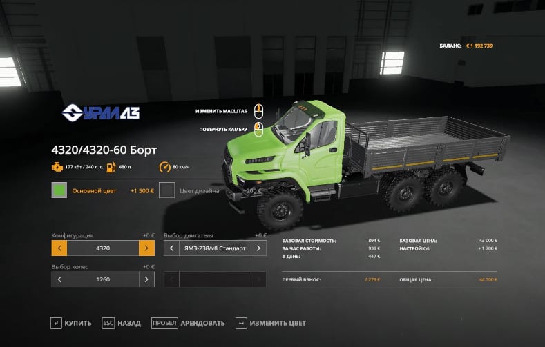 Choice of colors for the cab and body, choice of wheels, 6×6 off-road all-terrain vehicle, animations of devices, live suspension and bridges with cardan shafts, autoloading. dirt full of scratches on the frame, choice of chassis and choice of engines with different sounds …
