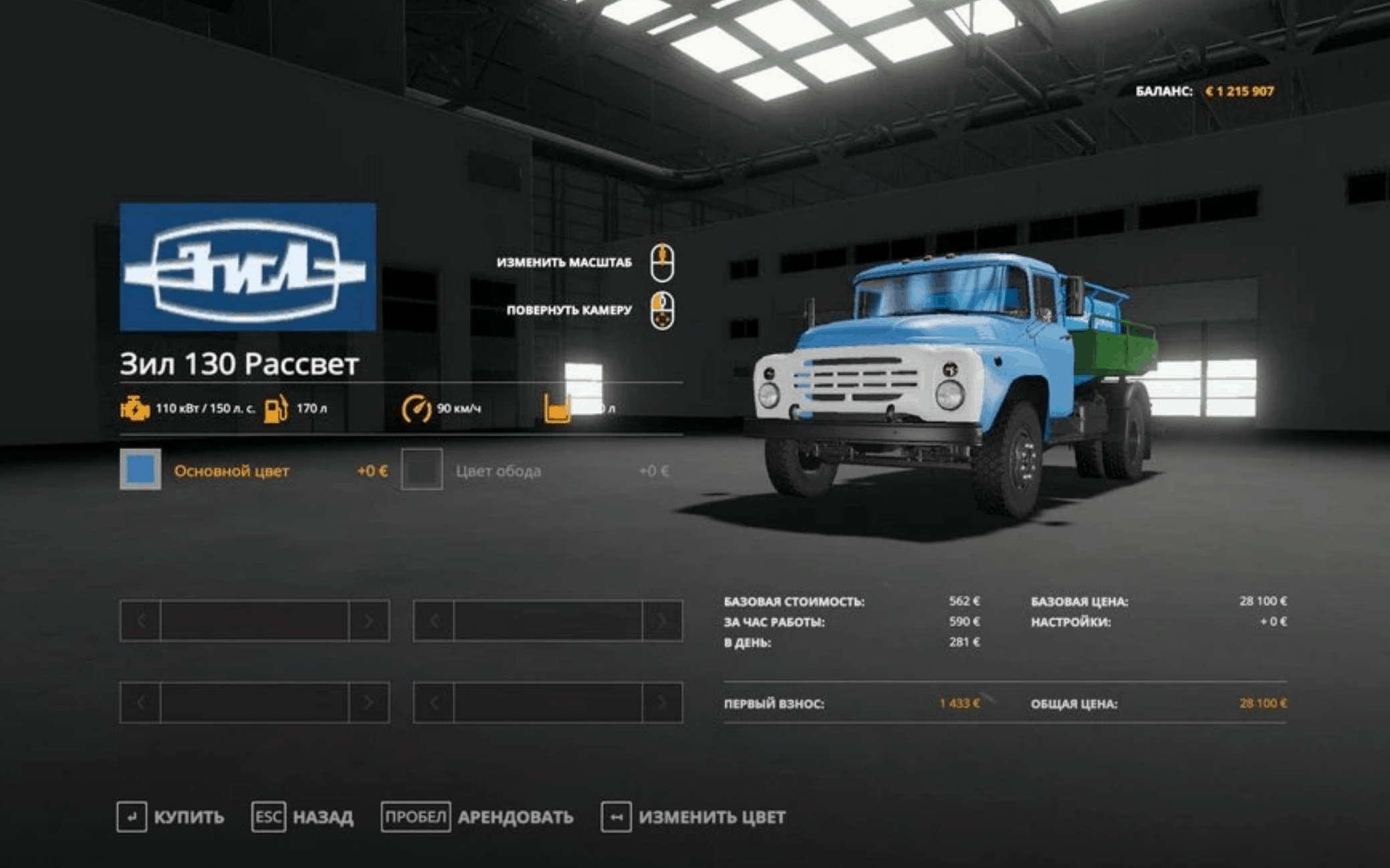 The choice of the color of the cab and rim, animation of devices, lighting equipment.