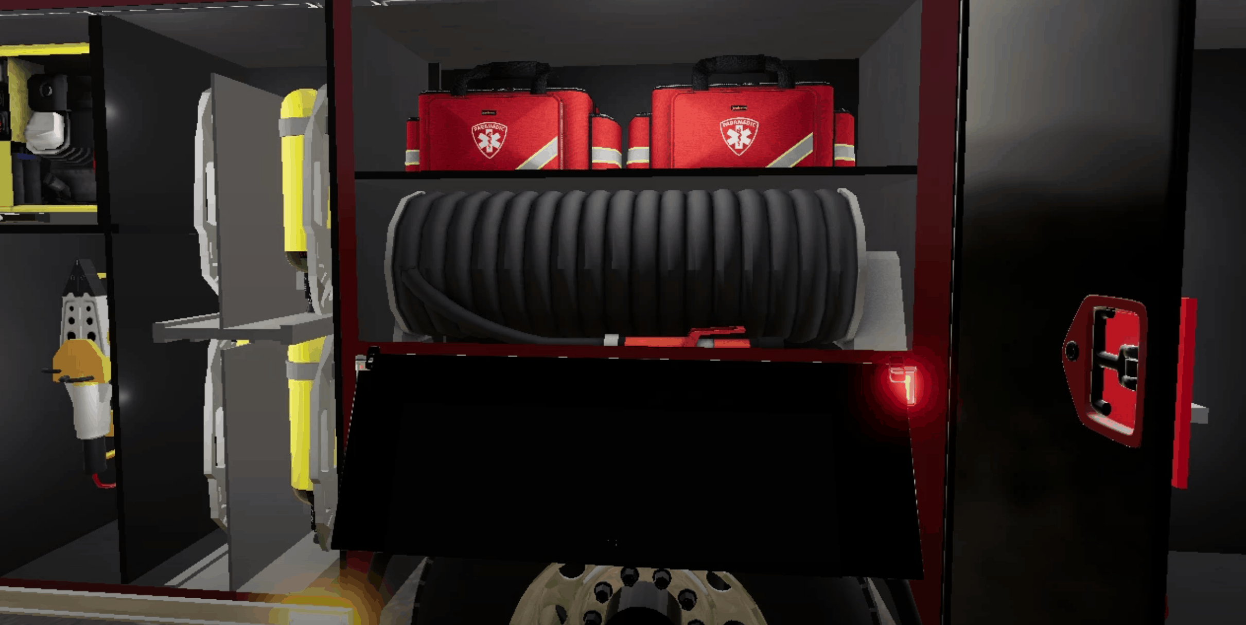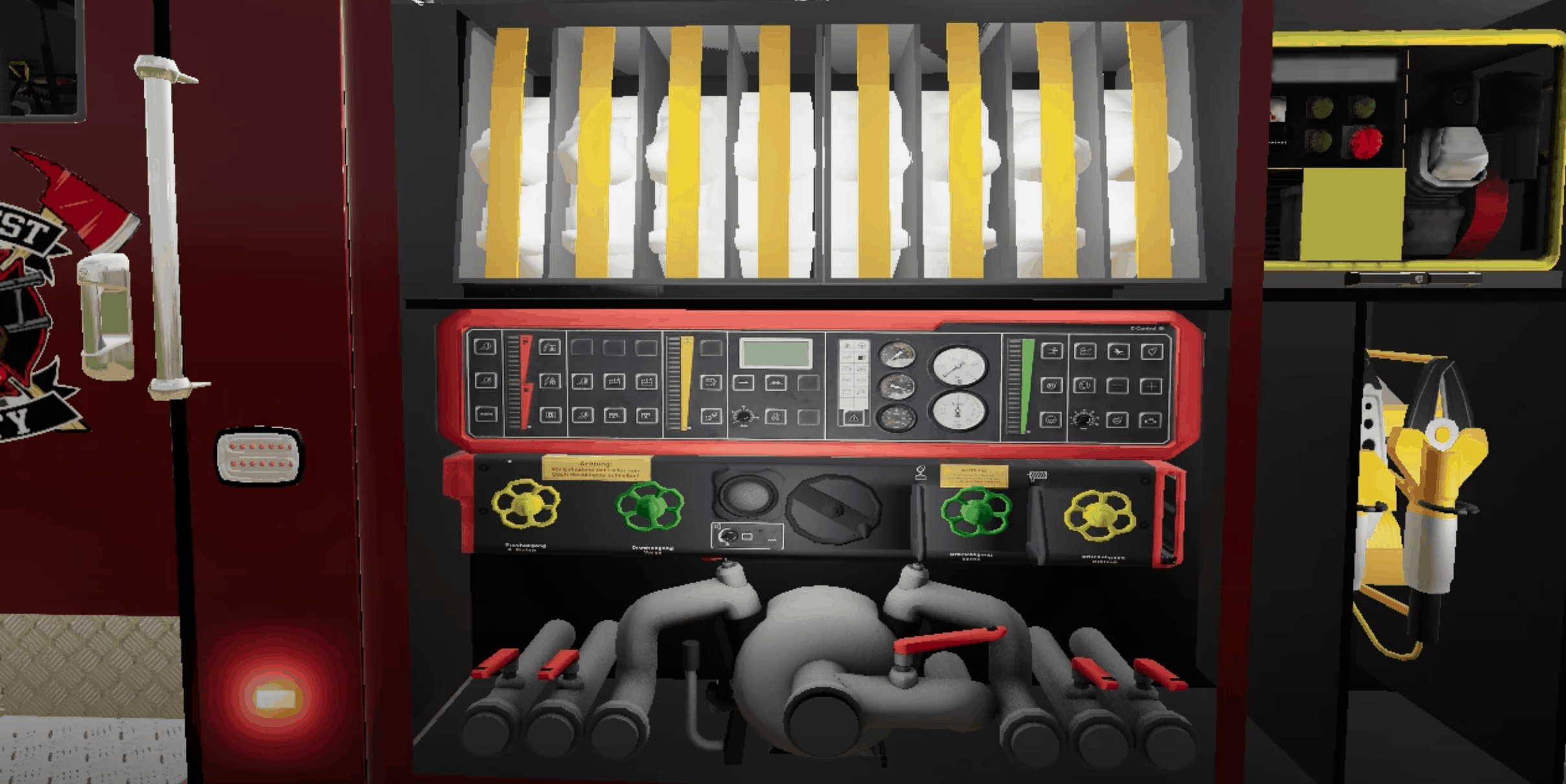 The modification is dedicated to the American fire truck v1.0 for Farming Simulator 19. The modification has correctly working lighting, stroboscopes and a module. In the modification, you can open the door and roll the blinds upwards under which there is a 3d building.