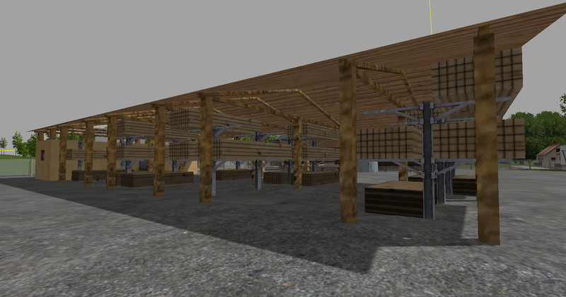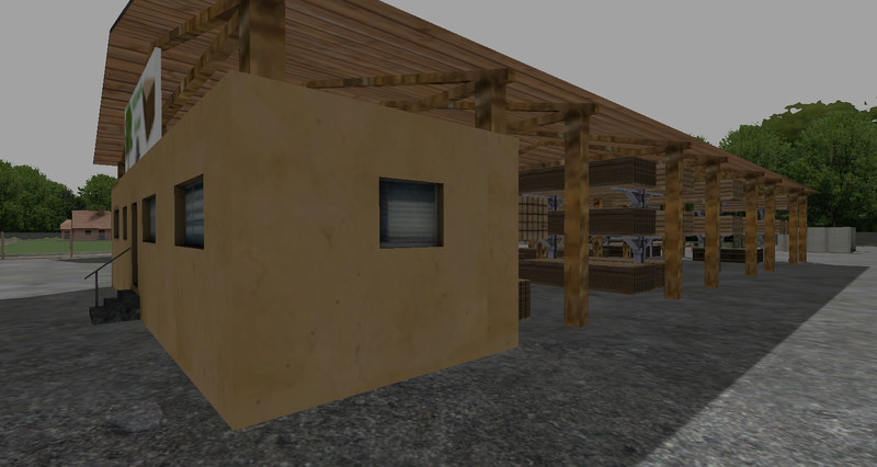 A small sawmill for installation with the GE, triangles total 19000, AO textures and log are clean. Included in the folder are a sawmill, warehouse, debarking machine, wood dryer, Baumstappelhalter, different strains, beams and Bretterstappel, and a Holzstappel. All buildings and objects are placed freely to build a custom sawmill. Have fun with it.