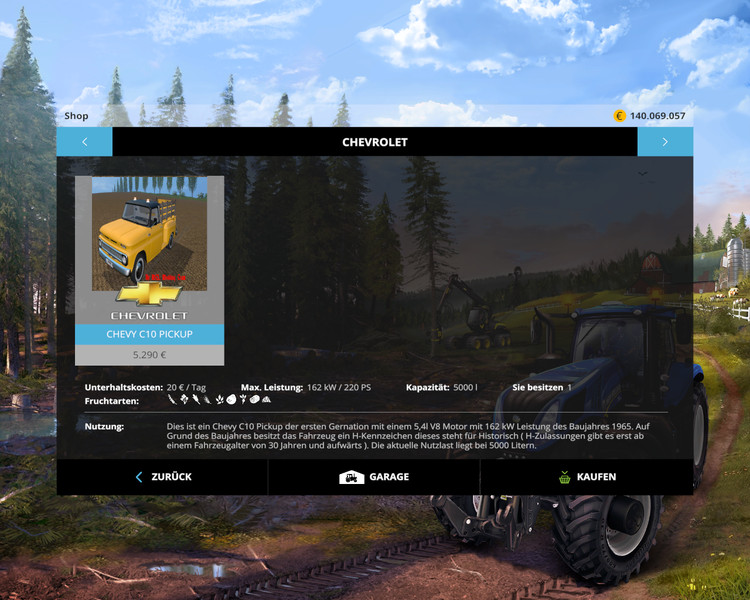 “This is a Chevy C10 Pickup the first with a 5.4 liters V8 engine Gernation with 162 kW output of the model year 1965. Because of the model year, the vehicle has an H-plate this is for historical (H-approvals there only from a vehicle age 30 years and up). The current payload is 5000 liters. ”