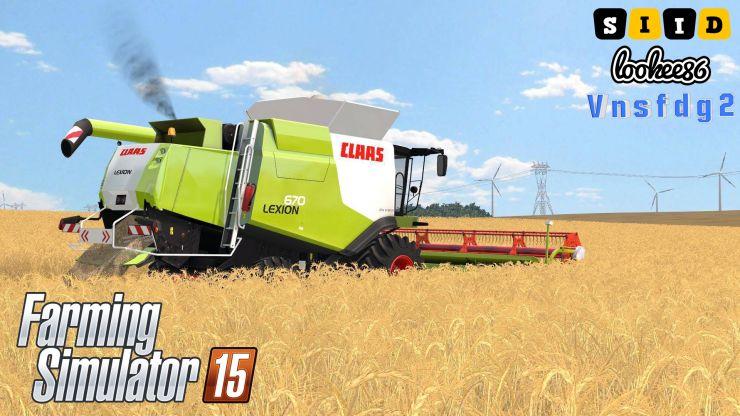 The package is a harvester Claas Lexion 670, 670TT, Claas vario 750, 900, 1050, 1200 Claas Conspeed 12 75FC and a set of trucks.