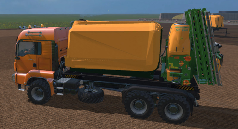 Here I have the amazoneUF1801 on a 5.4 m Absetzrahmengebaut. With a total of 20000 liter auxiliary fuel tank capacity.