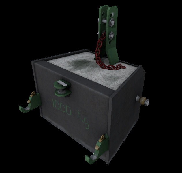 A 1000kg weight which can not only be used for ballasting but also as a growing room. It has a towing jaw and space for an attachment.