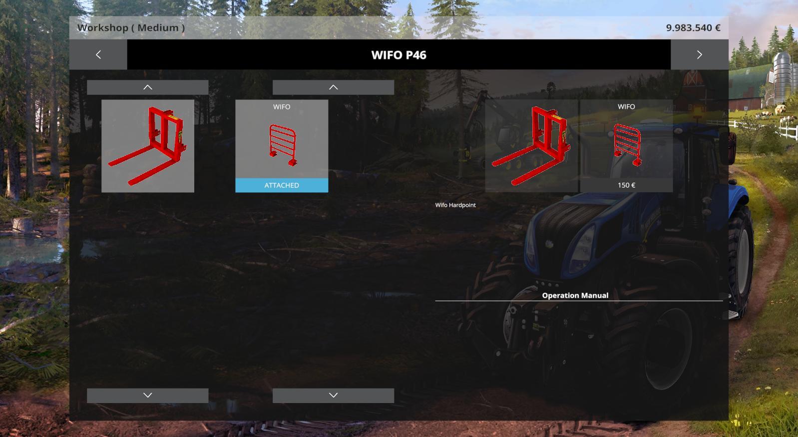 The Wifo P46 is a small and cheap palletfork, you can us it in the front and back hitch. The price is 575 Euro and 200 Euro extra when you want the extra hardpoint fence (We want to thank VertrexDezign for the hardpointscript!) and the dailyupceep is just 1 euro.