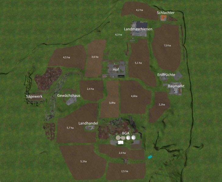 – There is a courtyard with: machine shops, grain warehouses, dairy, silos and Ball bearings, cattle fattening, pig, washing place, beet cutters, Mixfeeder and Erdfrüchtelager.