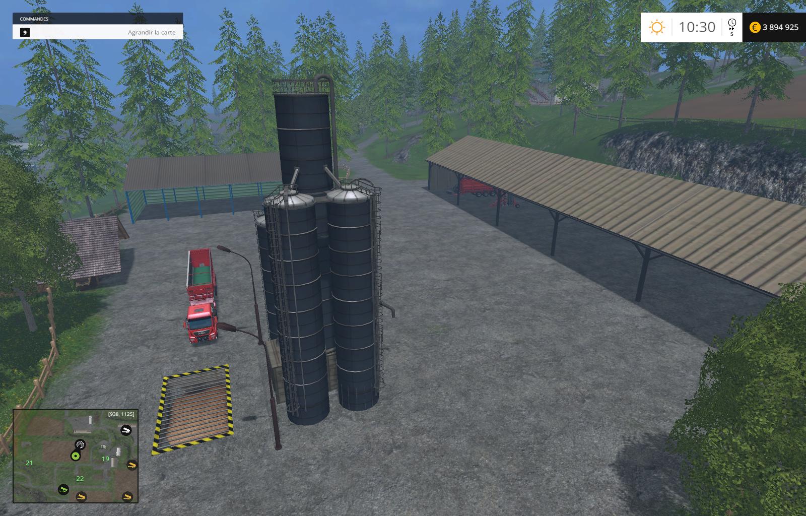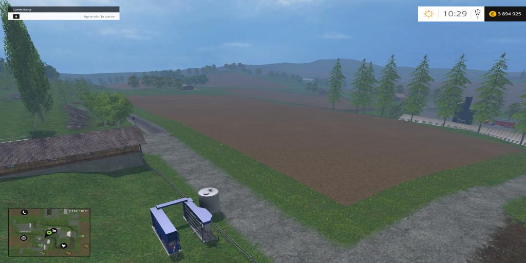de boerderij en bewegen op de heuvel, het gebied wordt vergroot, twee pakketten hebben is gemaakt, toevoegen van stocage voertuig en de bouw van stro en twee stocage voor aardappel en copeaux.les voertuigen standaard zijn remplacer.cette en een test dus vraag ik iedereen om rapport Standaard behagen dank u en goed spel