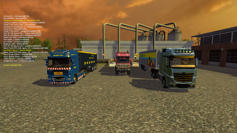 Mixer Factory: production of compound feed by 1. bran, grass and water or 2.Kleie, grains Meis and water