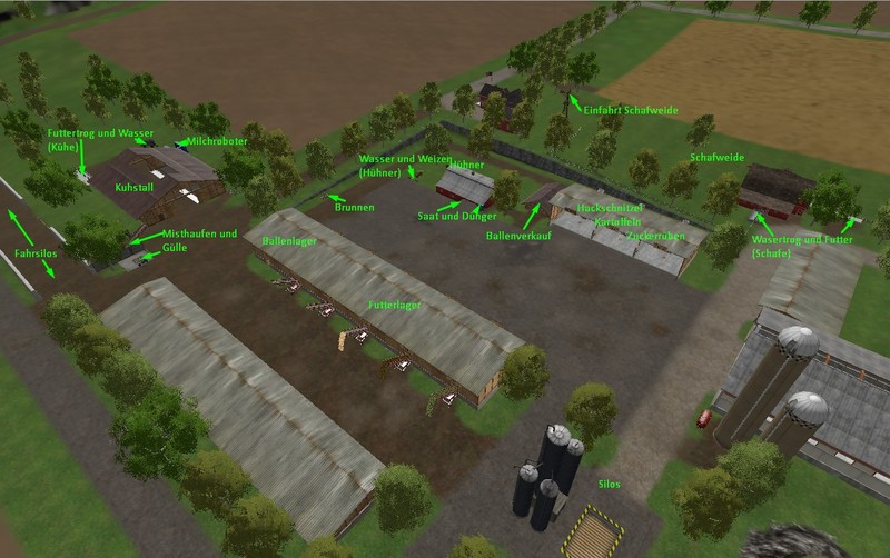 Marhu (WaterMod, Mischstation, Milchtrigger), 1984Fendt936 (Futterlager), Zatoxx (Gülle-/Mistverkauf), mariodiecke (Hackschnitzelförderband), nl-modding (Weidentor), vanillaice83(Rampe), hellboy1975(Tisch), Rosenthaler (Obst- und Beeren)