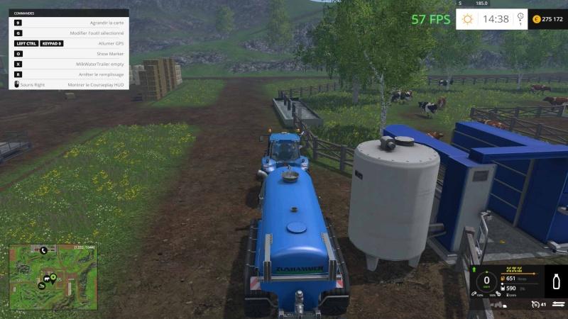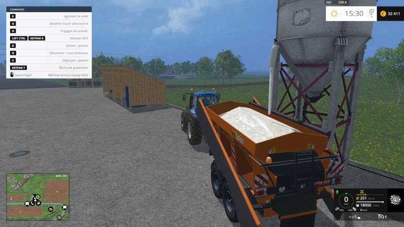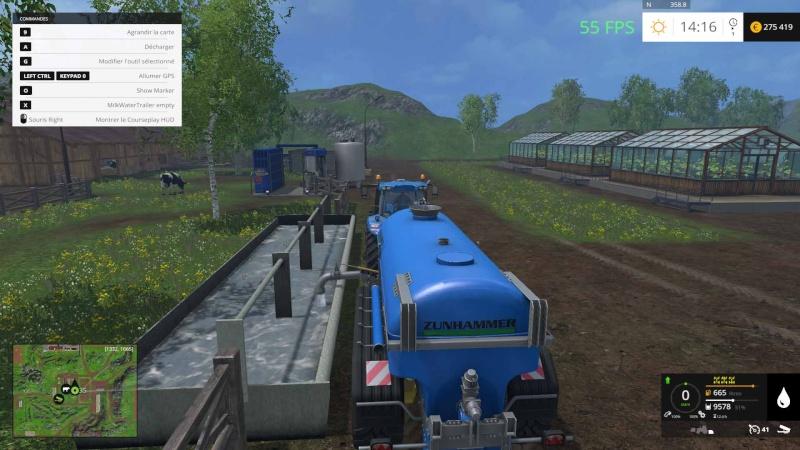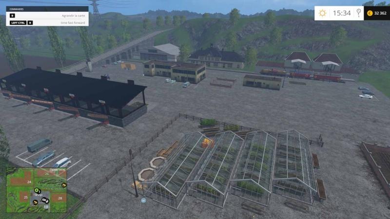 Bonjour, cetta carte est reconstruite entièrement avec la base de la version 2015, ily a une aire de stockage pour les aliments, le fumier, lisier, chaux, le water mod est installé aussi, 3 forêts pour la sylviculture.