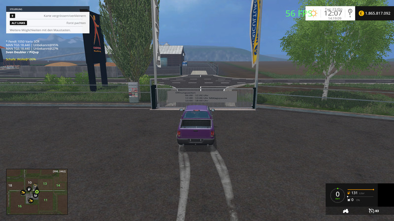 Fehler das der Helfer am Feld 1 aufhört behoben. Achtung hierfür wurde Feld2 verändert. Entweder neuen Spielstand anfangen oder aus der entzippten Karte die fruit und cultivator grle mit ins Savegame kopieren. Tore am Hof gegen Schranken getauscht bis ich das mit dem Timecontrollgate hinbekommen habe das es rund um die Uhr öffnet. Öffnungszeitenschilder an allen TimecontrollToren angebracht.