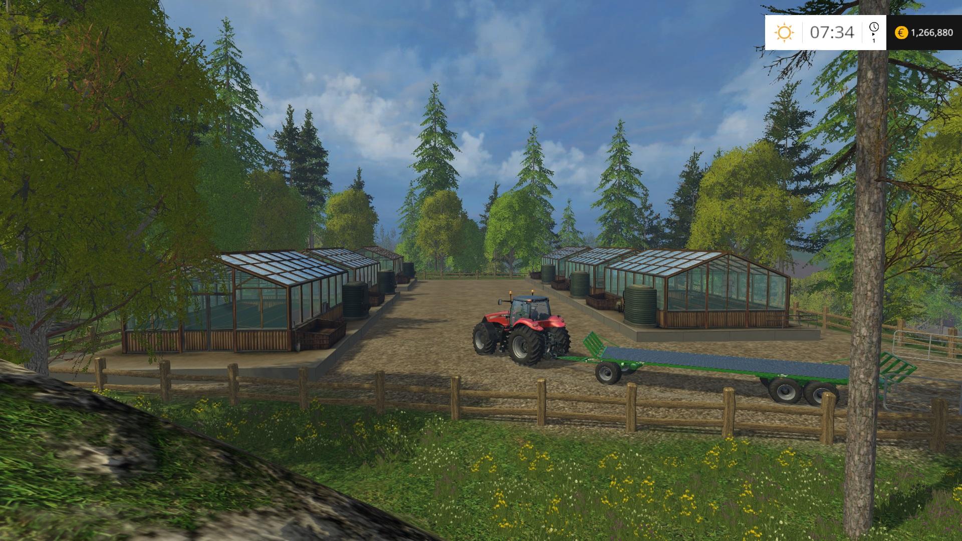 For players new to Ringwoods the map was based on the original Westbridge map, it has a huge surrounding forestry trail which rings the full map on it’s pushed back boundarys without sacrificing any field space. To say a few trees are pre-planted is an understatment and it’s a fun place to take a break from farming with an off road pickup. Field layouts have been changed from the Westbridge original map to make a better operating environment. There are 3 large farms, Multiple ways to make money and places to sell. 3 sawmills and a main mill with Marhu’s sawmill at it’s center. Animal fattening pigs, beef and chickens, Compost factory, Farmer_Andy’s new salad factory, 3 fenced empty flat areas for placeable mods, a wool pallet collector and more. The trees have had photoshop work and so have most of the textures in the map making it a beautiful place to farm in.