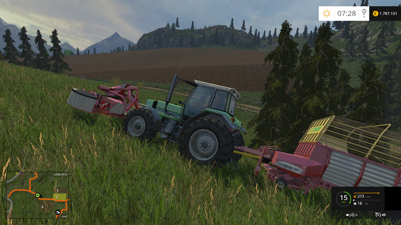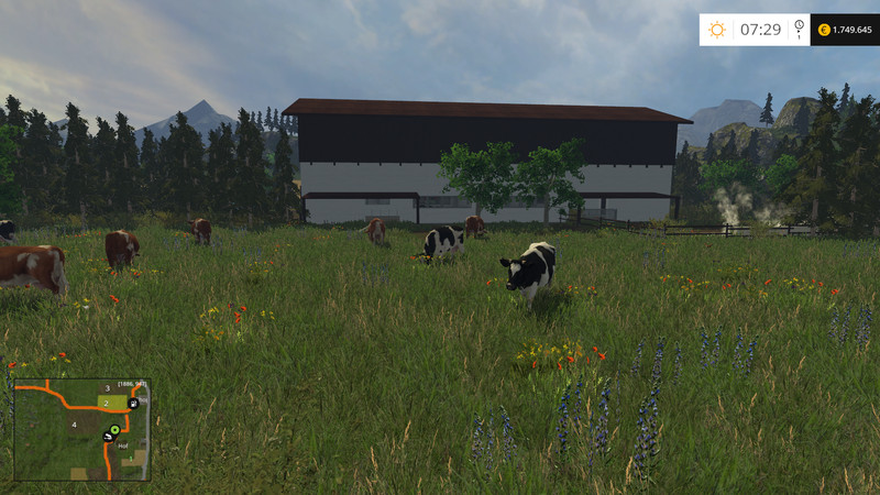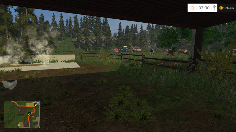 The Rocks is a rocky hilly Map. You have here a no farm with cows. A little further away are cattle and sheep. To lönnen store large Mashcinen there are a little further away from the farm, a contracting company. The shop is located next to the farm. All conifers are Fellbar and can be sold at the sawmill. Cereals, potatoes, beets, cattle, wool, (Landi) can be sold at the mountain station.
