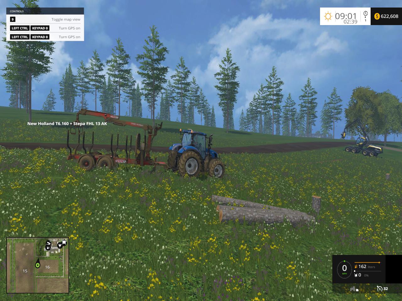 This is my version of the Westbridge Hills map for FS15. It has been set up to be primarily for logging. There are no vehicles running to get in the way. There has been a few extra storage places added at the farm area for Chaff, Grass, and Straw. I added a couple extra farm silos to make it easier to unload your crops rather than having to run to one place to unload. I also made the log sell trigger at the sawmill a little bigger so it’s not necessary to unload your logs from the trailer. Otherwise it’s the same as the original map. All the fields are planted with trees to be logged. The original field areas are outlined to make it easier for plowing and cultivation once they have been purchased, trees are cleared, and the stumps have been removed. None of the fields are owned by the player. I changed around the hay bale selling area so it’s a little easier to back into the sell point. I also added some extra storage places at the cow area for feeding along with an additional bin for making silage.