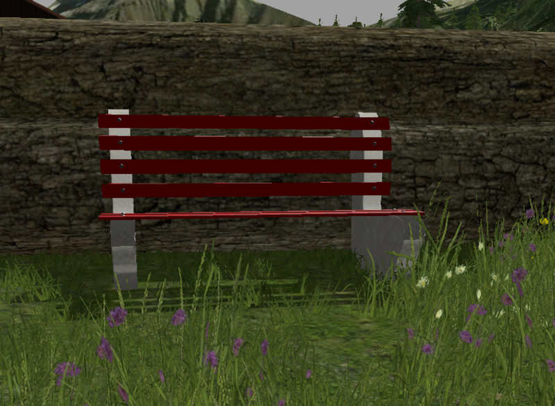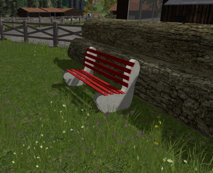 A park bench with concrete base and red boards to build in order to Giant editor.