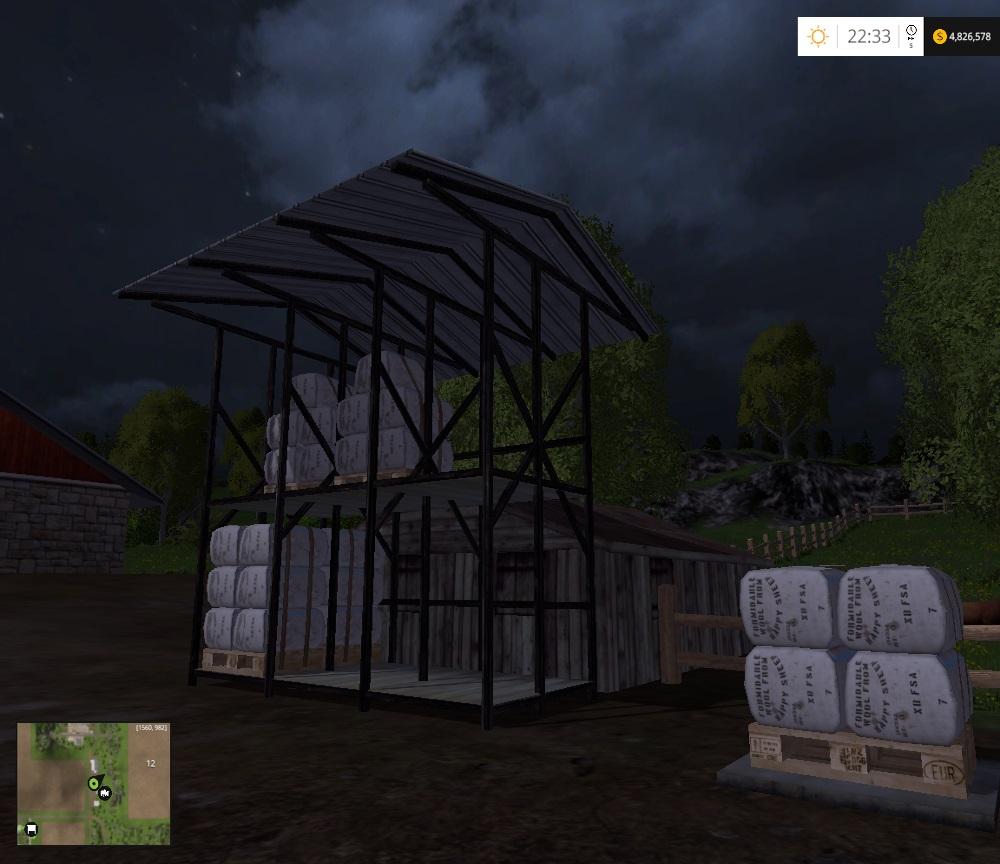 This is a placeable covered shelf to stack and store your wool pallets on. The shelf will hold 12 full wool pallets until you are ready to ship them. The store price is $200 with an upkeep of $1. It can