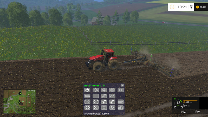 Unfortunately, it happens again and again that frame rates drop. When starting AutoTractor you should make sure that the rear wheels of the tractor are already on the correct field. Concave field margins let the FPS decrease strongly. This problem I have not yet fully under control. Apparently, this phenomenon occurs less strong in circular mode.