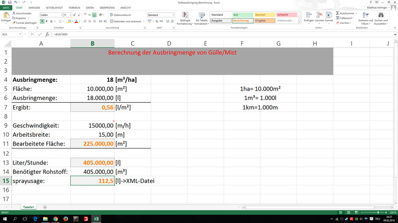 Mist Gülleausbringmengen Calculation Table V 1.0 FS15