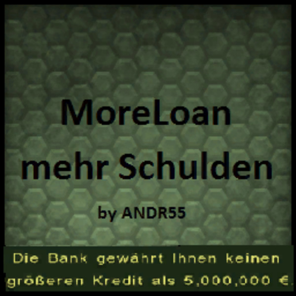 Finding a game interesting after investing 300 hours into it can become a bit challenging. But with mods as long as there is a new update is assured, you are guaranteed a few more hours of new exciting gameplay. FS 15 Other Mods are one of the greatest upgrades and can make your game unique. Downloading and adding MoreLoan More Debt V 0.2 mod Mod to your game is not difficult at all - you simply need to save a file and run it.