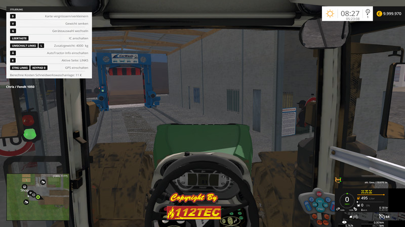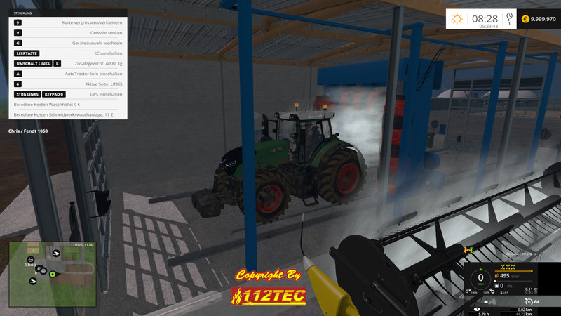 For the reapers an extra bathroom space is available, where you can let wash them automatically. (Cutting store on shelf, vehicle driving away, go to the Control Panel, “O” key and the washing process begins after end with “O” stop and the price will be deducted from the account).
