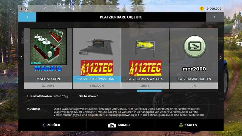 With this you can wash your vehicle without your Kärcher. Washing process takes about 1 minute. Prices vary depending on number of contaminated equipment, degree of soiling and cleaning speed set in the Fahrzeug.xml (but are quite realistic)