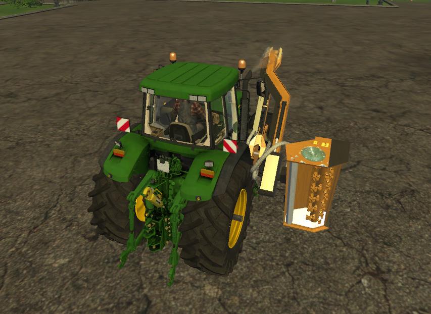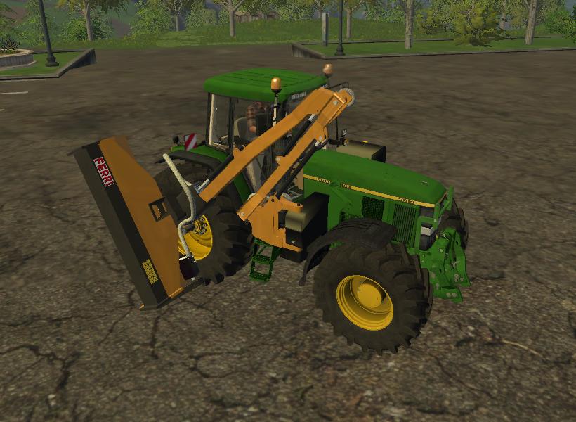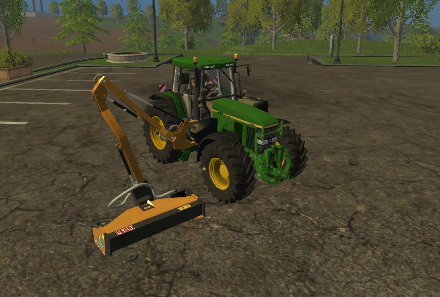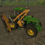 This is an edit of an existing tractor created by Sotillo/TomasT150 and the Ferri TPE EVO created by HoFFi. Like many American tractors used by municipalities for mowing the sides of roads and highways, this tractor has the mower unit attached to the right side and counter weights added to the left. The mower is unfolded by the “x” button and activated by the “b” button. The front loader attacher works independently of the mower as well.