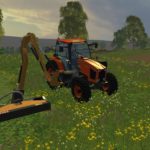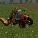 This is Kubota an edit of an existing tractor created by vasilisvasilis31, Fr3ak, converted to FS15 from FS13 by ENG51INE, and the Ferri TPE EVO created by HoFFi. Like many American tractors used by municipalities for mowing the sides of roads and highways, this tractor has the mower unit attached to the right side and counter weights added to the left. The mower is unfolded by the “x” button and activated by the “b” button. The front loader attacher works independently of the mower as well.