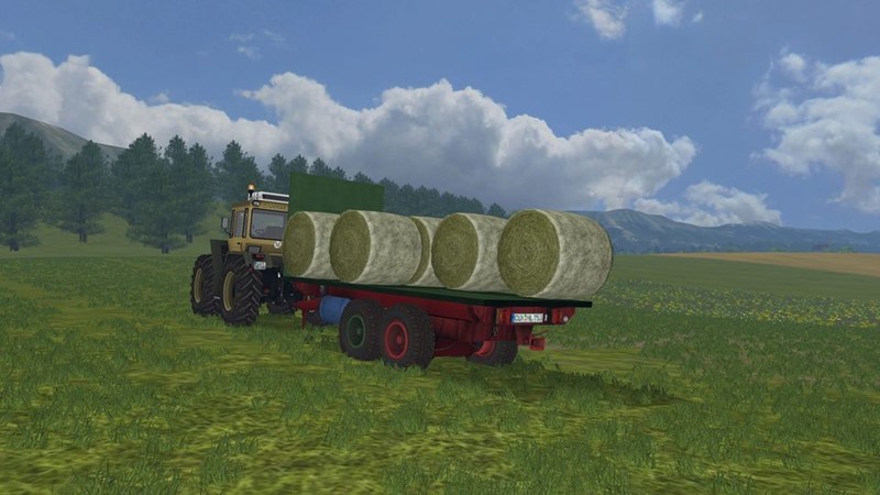 The car can load round bales and square bales.