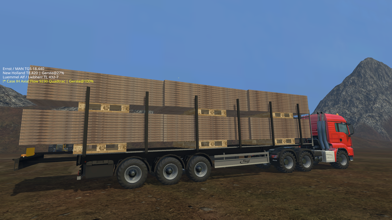 Daraufhin habe ich mir eine Sattelauflieger umgebaut, der auch die Bretter fahren kann.