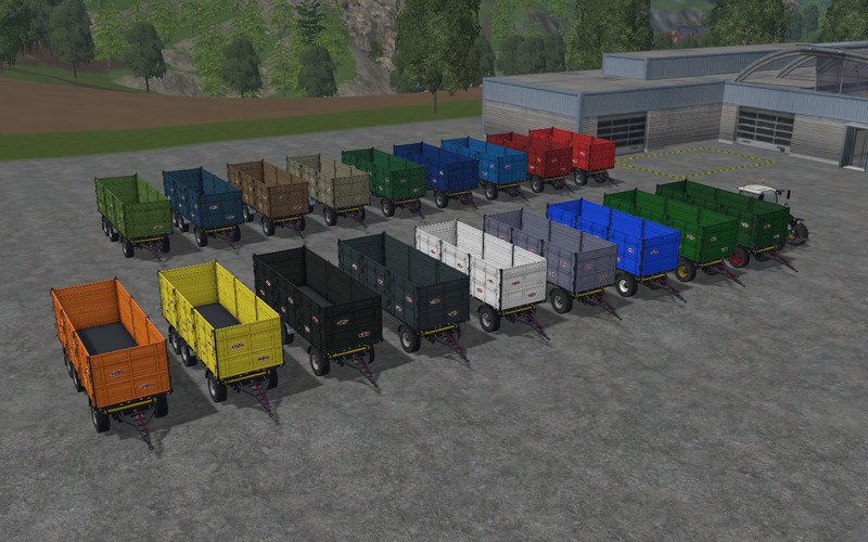 – The set includes 4 VERSIONS : – NH (white / blue) – John Deere (yellow / green) – Fendt (green / red) – and version colorable, realistic animations unloading, washable; Fruits supported:: wheat,rape, maize, barley, seeds, chaff, potato, sugarBeet, silage, woodChips, grass windrow, dryGrass windrow, forage, forage mixing…