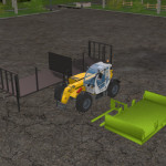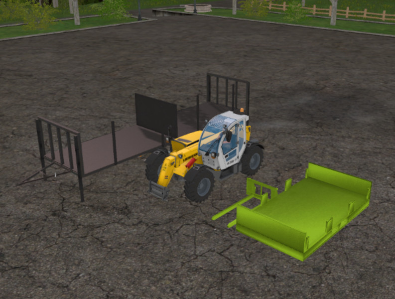 Here I have a Setzlingsset. consisting of a Spezia + ellen pallet fork. This is with clamping function. 2 m long forks to accommodate two pallets simultaneously. With the X button the load is clamped to the fork. In addition, the forks of 25 cm can be shifted to the right and to the left with the right mouse button. With clutch for wheel loaders, Telelader and front loader