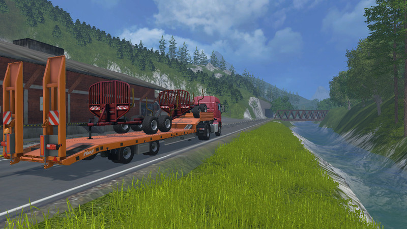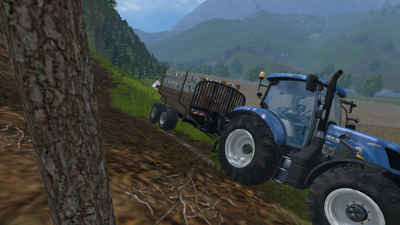 A trailer with this equipment comes on an empty weight of 1.2 t, this is not for the company AlpSaw GmbH very insignificant in the region of their TheAlps15 many wet soils and slopes are present here are large tractor with even bigger trailer out of place. Why did the AlpSaw GmbH with its New Holland T6 a small and lightweight trailer with high payload. After a few test rides in very rough terrain with small WoodTrailer TM12m they were so excited that they have the same 2 small “weasel” ordered. And why not, the price per unit of € 3,599 is unbeatable in this category! A small hook, the thing yet, street legal, the “weasel” unfortunately not. Optional but that will come in the near future assured us t0xic0m mods.
