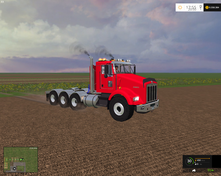 I have version V1 of trucks Kenwortht800, with its 14 tire traction: because it is 8×8, 4 axes did Their are active and dynamic features exhaust and dust in the air, leaving the coals on the roads, with plenty of drive and Which has a 1000 HP engine and can reach a speed of 85 km / s.
