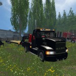 I was Looking For A Semi Truck To Make Into A Gooseneck pulling Flatbed When I Ran Acroos This Mack Single Axle Fifth Wheel Rig It Looked Like It would Be Just Right To Add Bed mod to it and I Was Right I added The Bed Lowered The Truck some and added and resized all lights on truck both gooseneck ball and receiver hitch has triggers and works I have aslo made adjustments in xml file to allow if needed to run Equipment off truck only from receiver hitch though And Added A little low brake force it likes to break lose in rear when you let off gas so low brake force helped with that. Overall I really like how it turned out but Interior is a blank shell it never was completed and the Crome Exsaust stack could not be relocated like I would have like too all crome items on truck was all linked together in ge so had to leave it and try to work it so it goes through the bed the best that I Could Get with causing other Issues I Have Also Added A Beacon light bar to top of head rack