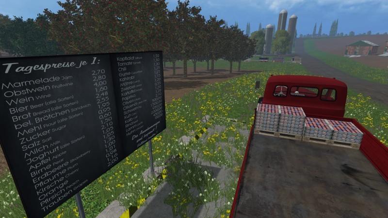 This is the 1964 Magirus 200D26L Flatbed truck with tarp. It loads the standard fruits and nearly every fruittype for UPK-Mod, meaning vegetables, fruits, grain, bread produce, dairy produce, wine, beer, etc. (see pictures)