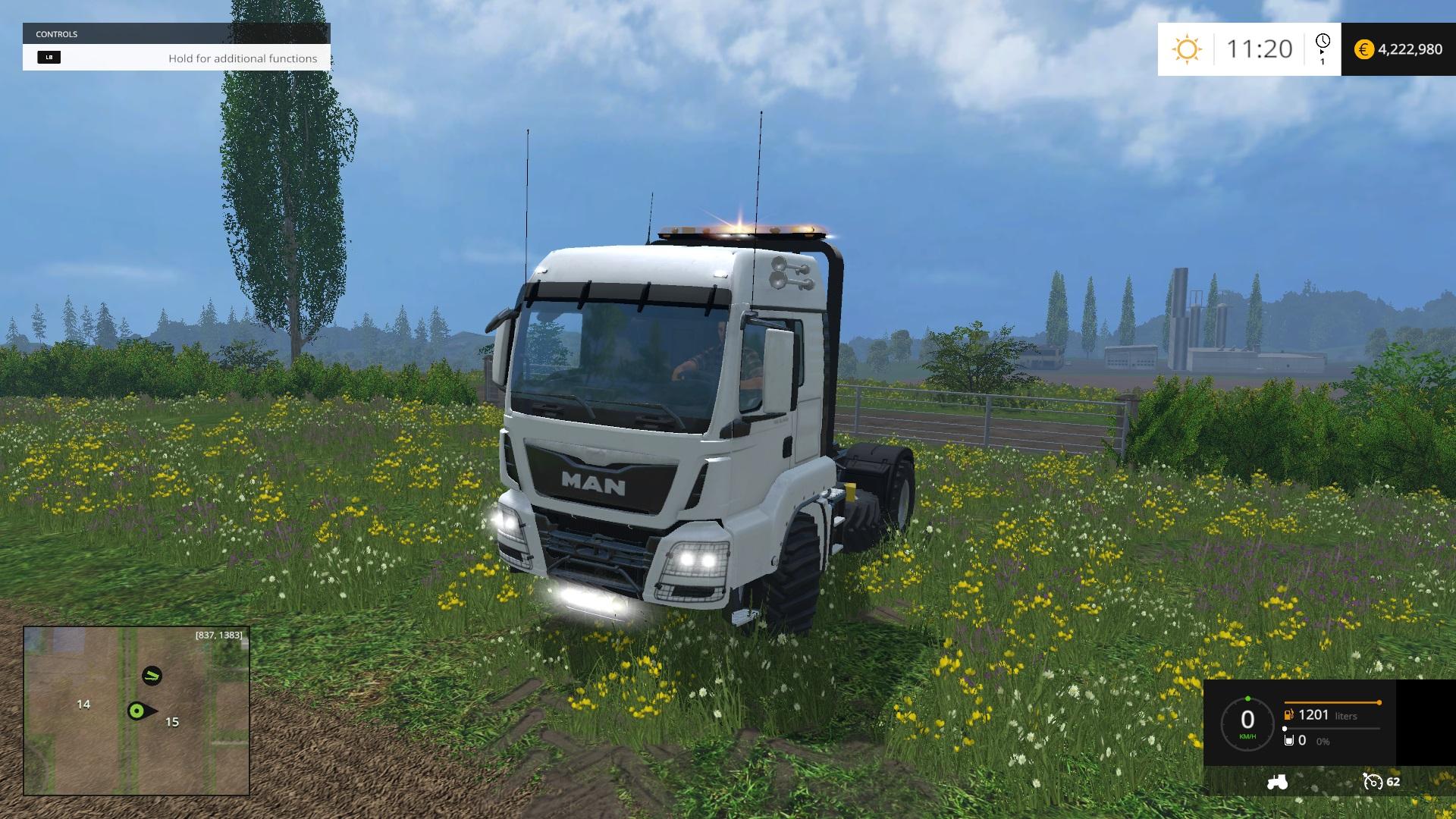 MAN 22s Fieldmaster, custom spotlight bars and cab protector. Beacon lightbar fitted and aerials, wider trelleborg tyres. Drive for all for wheels, and dyeable cab. Road speed limited to 65kmh, washable and multiplayer. Clean log zero errors. This truck has plenty of pulling power. 95000 to buy with 95 daily cost’s.