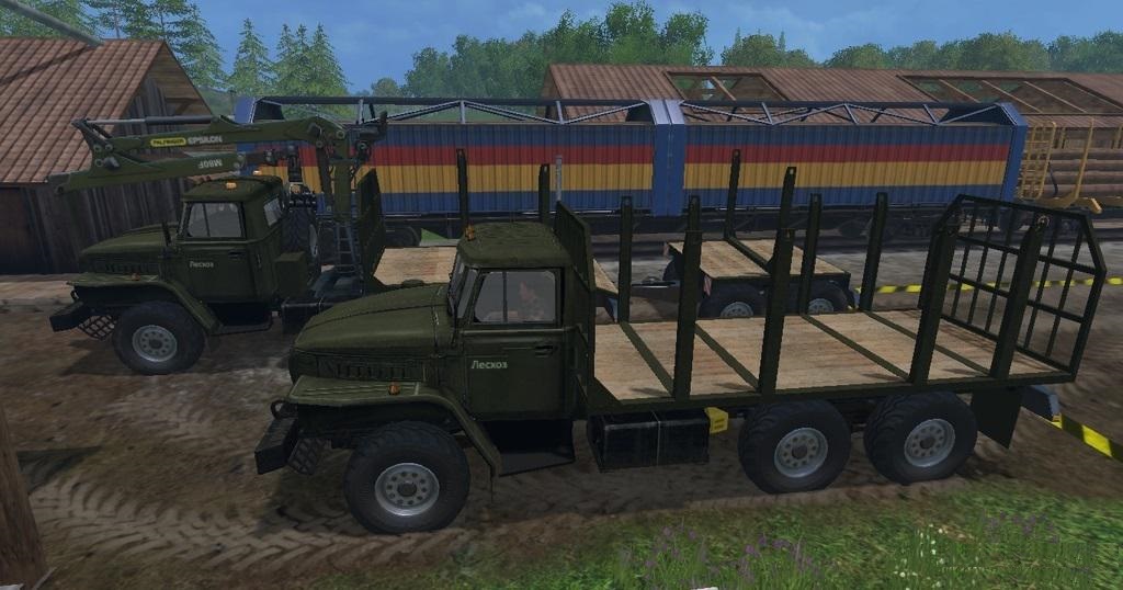 Urals alone powered by the same engine of 240 horses, 6×6, model weight about 8500 kg, slightly reduced fuel consumption, the price is $ 32,660. Both have animirovanye mud flaps, “soft” lighting devices, a transparent glass. On the single footage transported logs 5m spelled animation unloading on Stock script is included on the “X”.