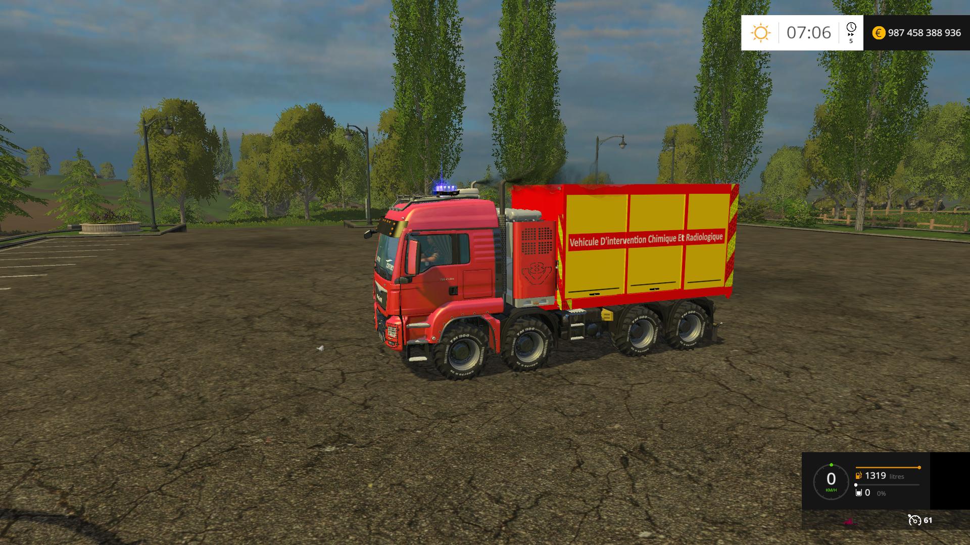 voici un vehicule d’ intervention pour les risques chimique et radiologique sur un chassis man 8×8 pompier skine dj6310 mods originale du man deja parrue pas modifier