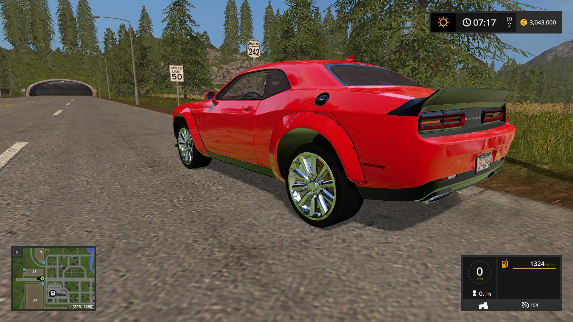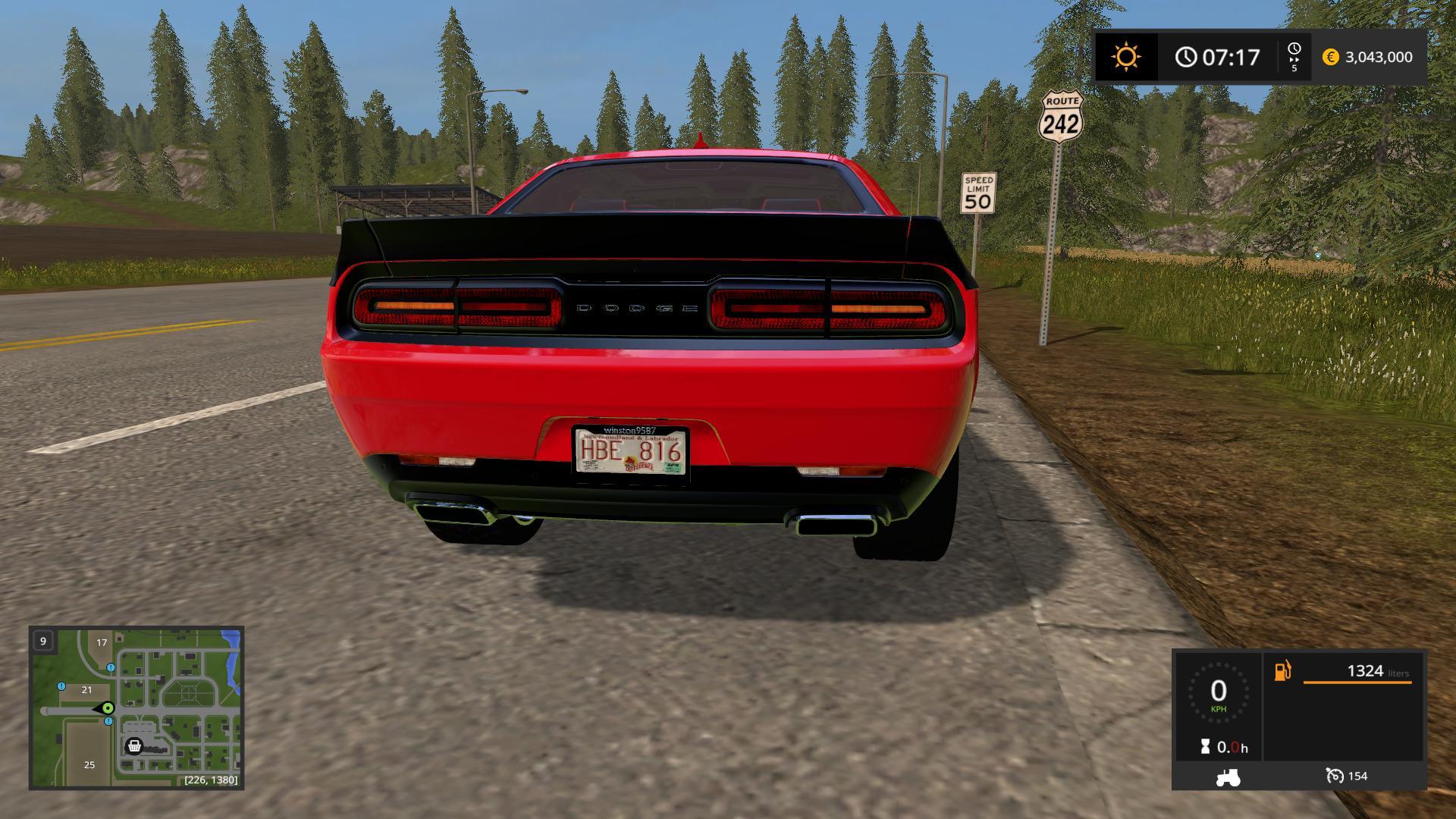 Today we bring you another awesome Dodge Challenger from Winston Modding for Farming Simulator 2017. This time round it is an amazing 2015 model Dodge Challenger SRT Hellcat. First of this car accelerates incredibly quickly. It will reach its top speed in no time at all. So if you need to get somewhere on your farm fast then this car is for you. Other features include operable doors, hood and trunk. The suspension also handles very realistically as well.