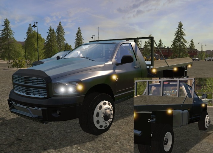 FS17 DODGE FLAT BED W RAILS TRUCK