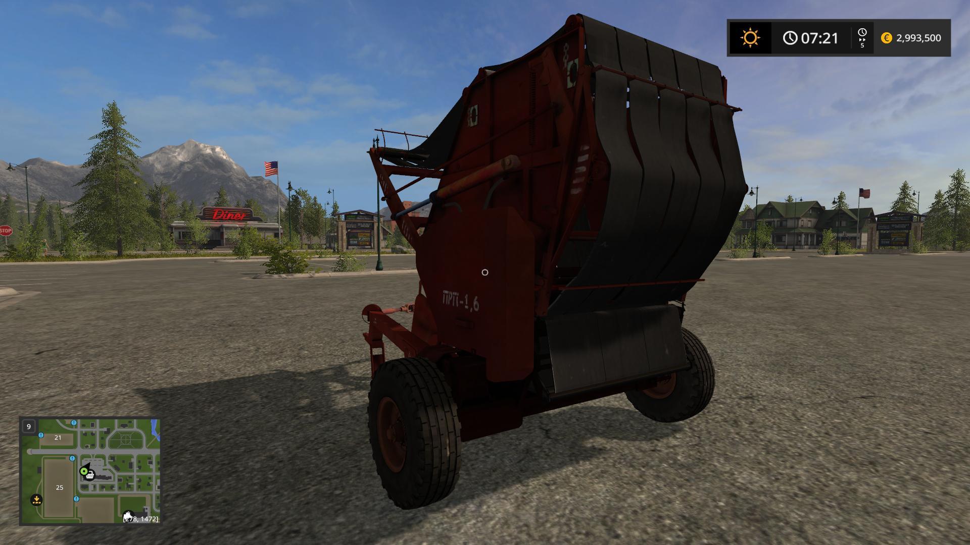 TUKOPPR PRP 1,6 The price is 3500. Round baler. Animation. Max. Working speed – 20 km / h. Working lights. Traces / dust from the wheels.